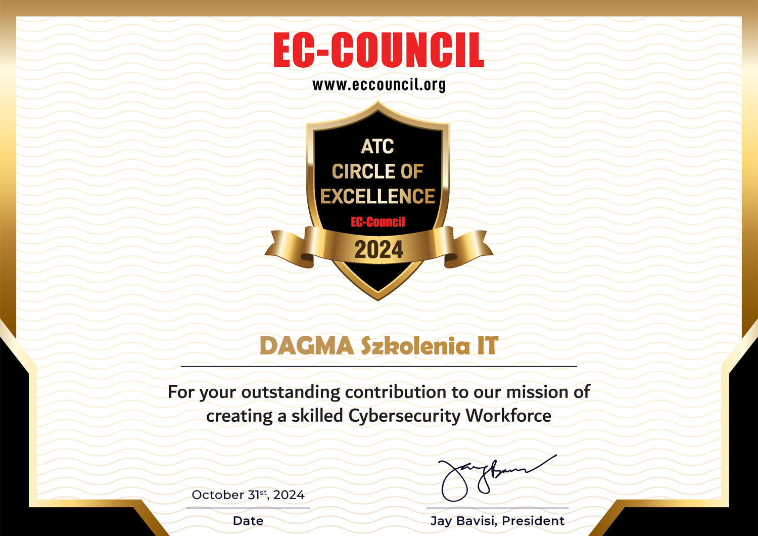 Z dumą informujemy, że DAGMA Szkolenia IT została uhonorowana nagrodą 2024 EC-Council ATC Circle of Excellence Award!